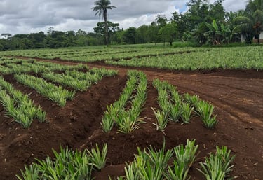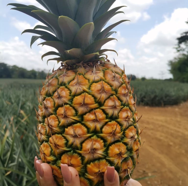 Ofrecemos piña de alta calidad, ideal para la industria hotelera y fabricantes de materia prima. Nuestro compromiso es satisfacer las necesidades de nuestros clientes con productos frescos y deliciosos.
